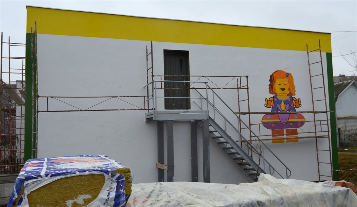 Наразі триває благоустрій території, фарбування та оздоблення фасаду. Садочок прикрашатимуть герої з Лего.