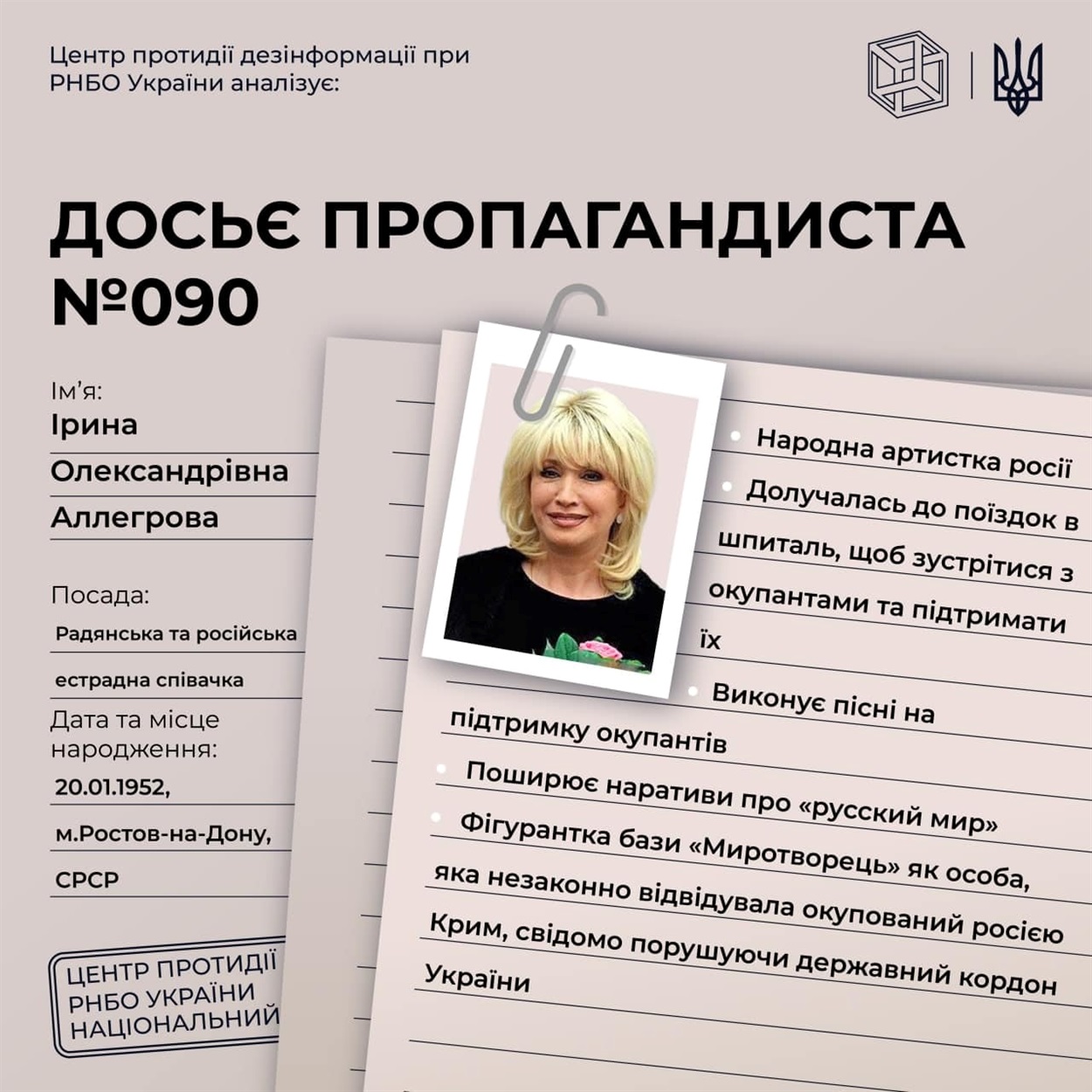 1. Ірина Аллегрова, російська співачка