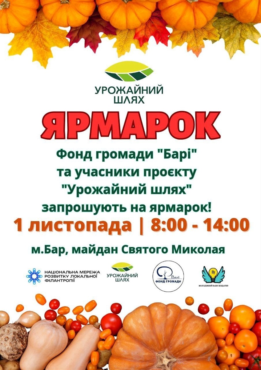На ярмарку можна буде придбати домашню випічку, мед, сир, овочі, фрукти та інші смаколики від місцевих виробників. Організатори зазначають, що це чудова нагода не лише скуштувати продукцію господарів Барської громади, а й підтримати тих, хто розвиває власні садиби та господарства в межах проєкту «Урожайний шлях».