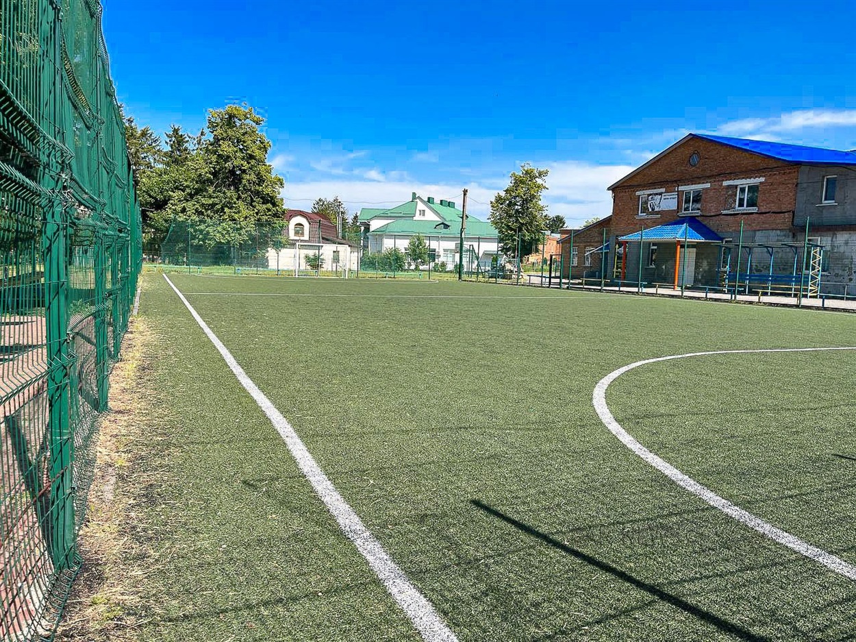 Тут облаштували систему поливу, закупили газонокосарку, частково пересівали газон. У цьому навчальному році майданчик активно використовують для уроків фізкультури та спортивних заходів громади.