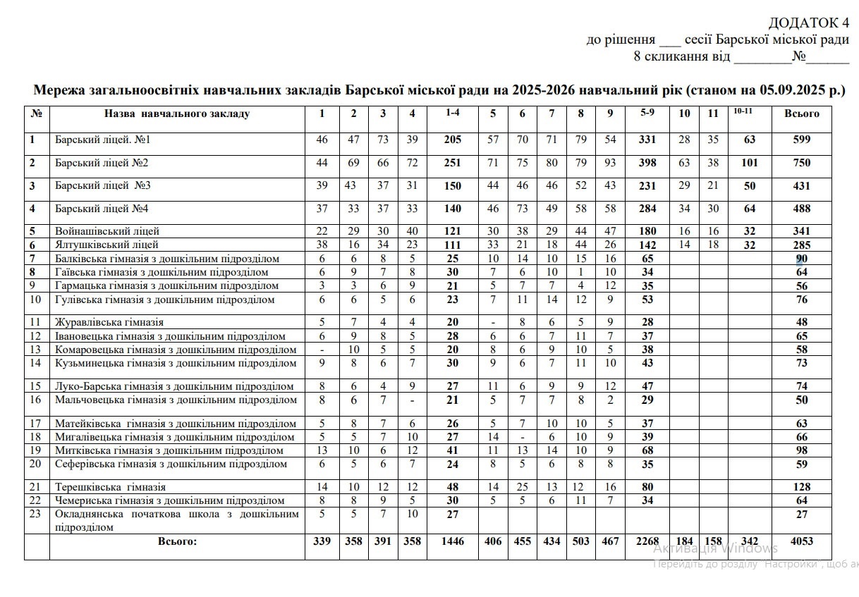 Барський ліцей №4 — 488 учнів, 22 класи.