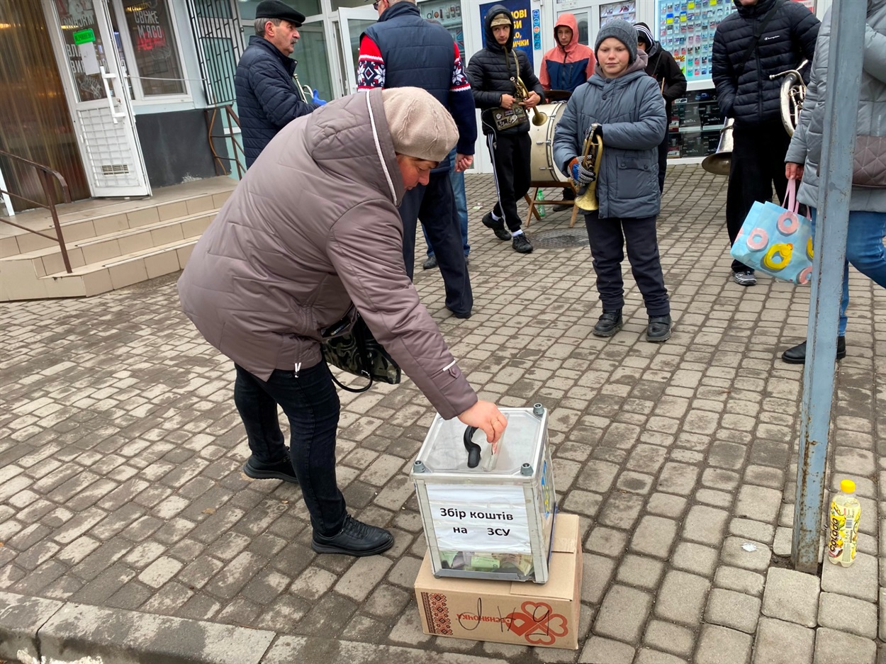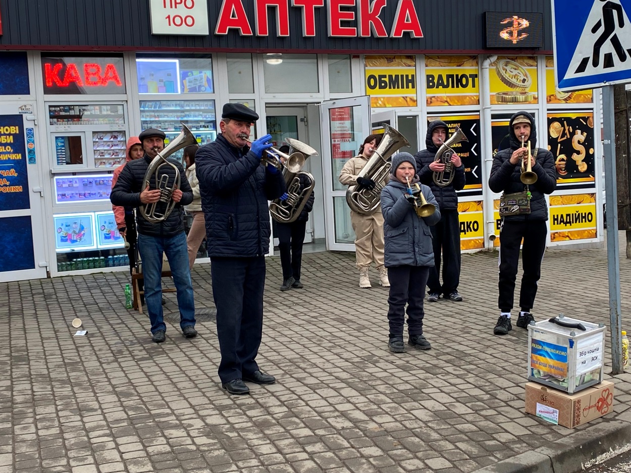 Музиканти грою на вулиці не тільки піднімали настрій перехожим, а й робили добру справу - збирали кошти для допомоги українському війську. В репертуарі оркестру переважно українські пісні, які вже стали народними.