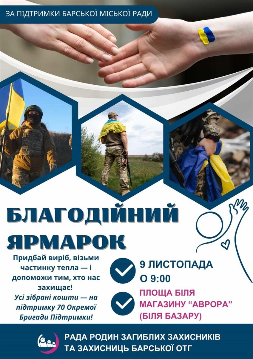 Організатори запрошують мешканців Барської громади придбати вироби ручної роботи, скуштувати домашню випічку та долучитися до доброї справи.