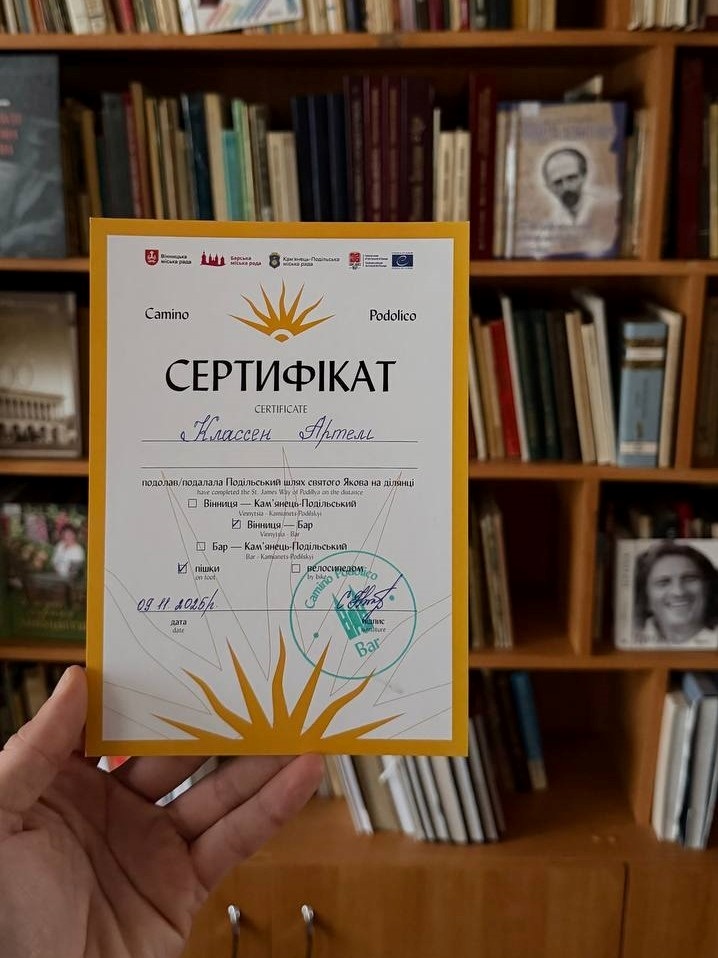 Киянин Артем Классен, відомий ведучий святкових подій, пройшов Подільський шлях святого Якова від Вінниці до Бара всього за два дні. Свою подорож він називає «ультрамарафоном» і водночас «дуже довгою медитацією». Про це повідомляє сайт Camino Podolico.