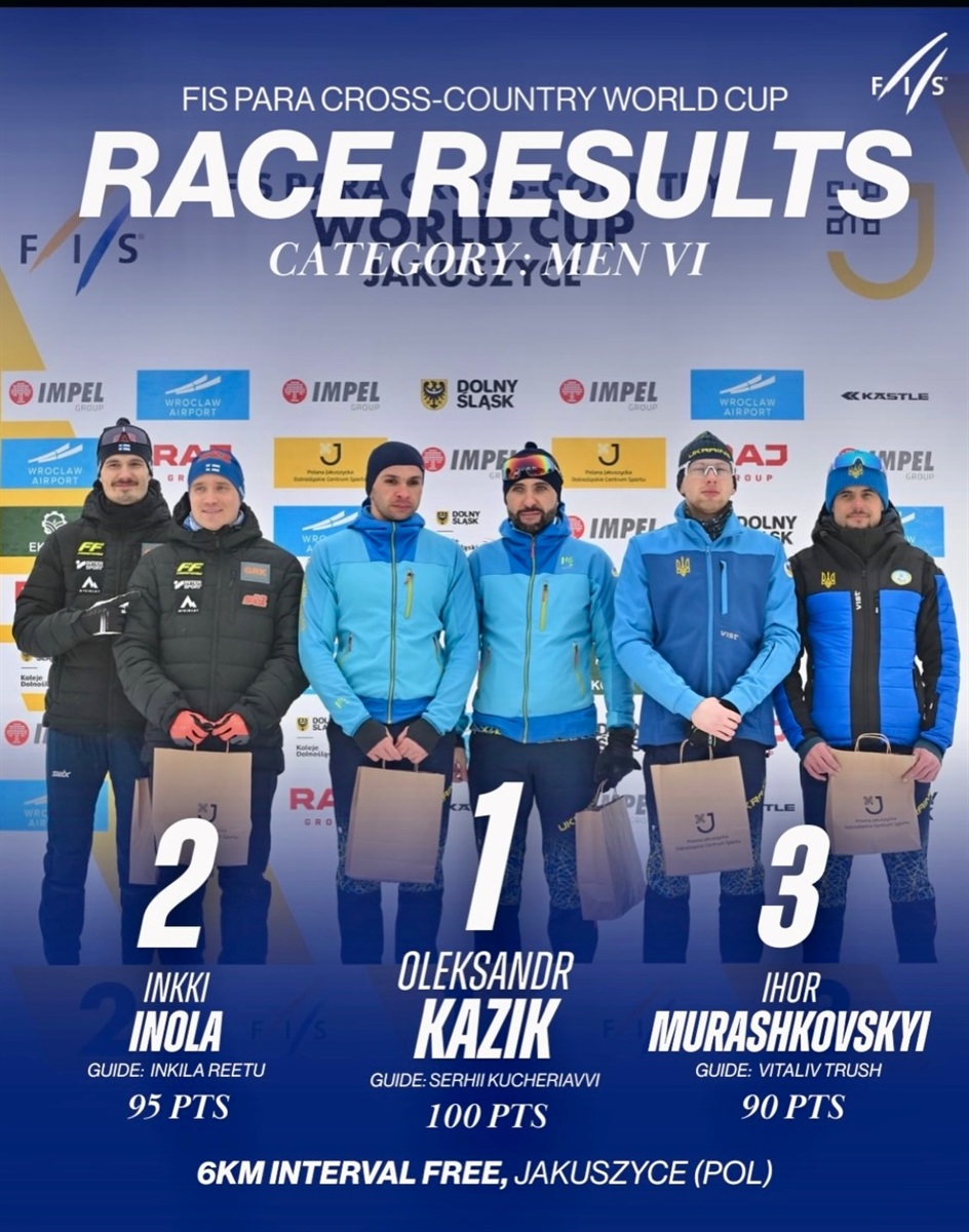 Збірна команда України з пара лижних перегонів тріумфально завершила етап Кубка світу FIS, який з 28 січня по 1 лютого проходив у польському Якушице — на тих самих трасах, де нещодавно змагалися пара біатлоністи. Ці старти стали фінальною змагальною рискою сезону перед Паралімпіадою-2026. Про це повідомляє Національний паралімпійський комітет України.