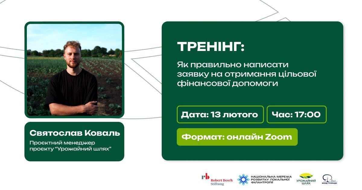 Під час тренінгу учасникам розкажуть, як правильно заповнювати заявку, на які критерії звертають увагу експерти під час оцінювання та як підвищити шанси на отримання цільової матеріальної підтримки.