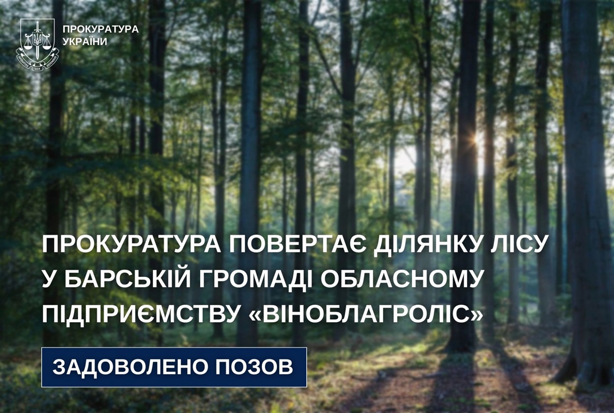 Прокуратура встановила, що вибуття земель лісового фонду відбулося з порушенням вимог земельного та лісового законодавства. Йдеться про землі спільної власності територіальних громад сіл, селищ і міст Вінницької області в особі Вінницької обласної ради.