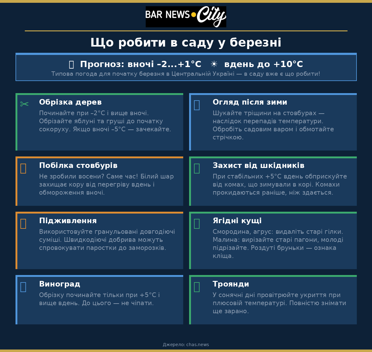 Що робити в саду у березні при температурі вночі –2...+1°С, вдень до +10°С