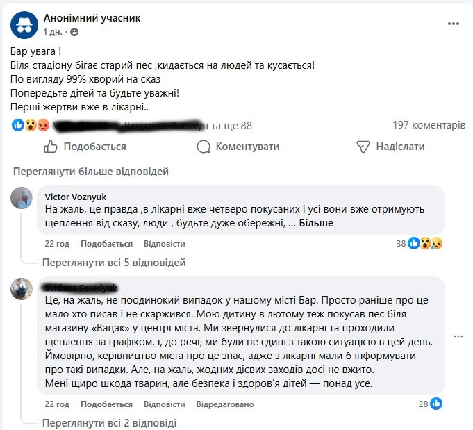 Інформація про це спершу з’явилася у місцевих пабліках. Користувачі повідомляли, що сірий пес із нашийником покусав кількох людей. Люди були налякані.