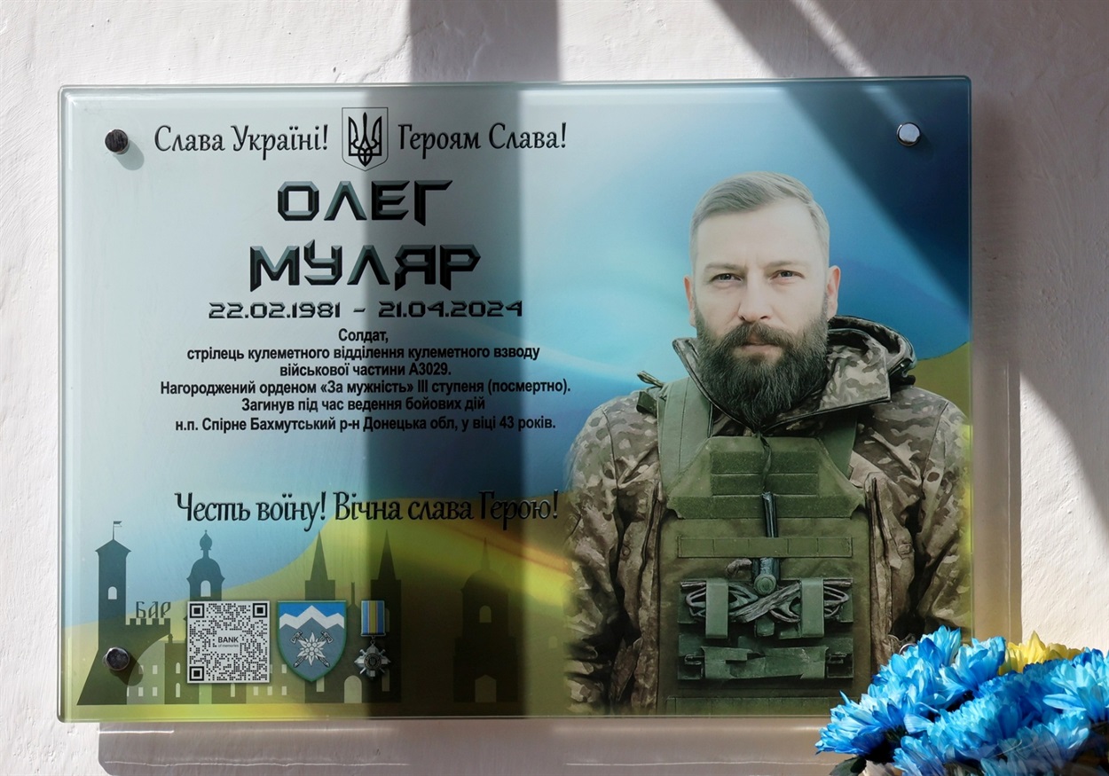 У Луці-Барській відкрили меморіальну дошку пам'яті захисника Олега Муляра. У цей день, 21 квітня, минуло рівно два роки, як серце Олега Муляра, відважного «Тора», зупинилося на Донеччині. Про це повідомляє Барська міська рада.