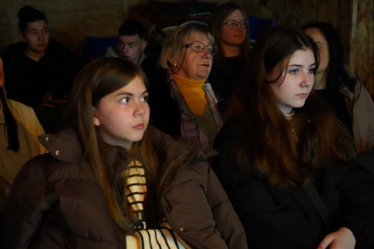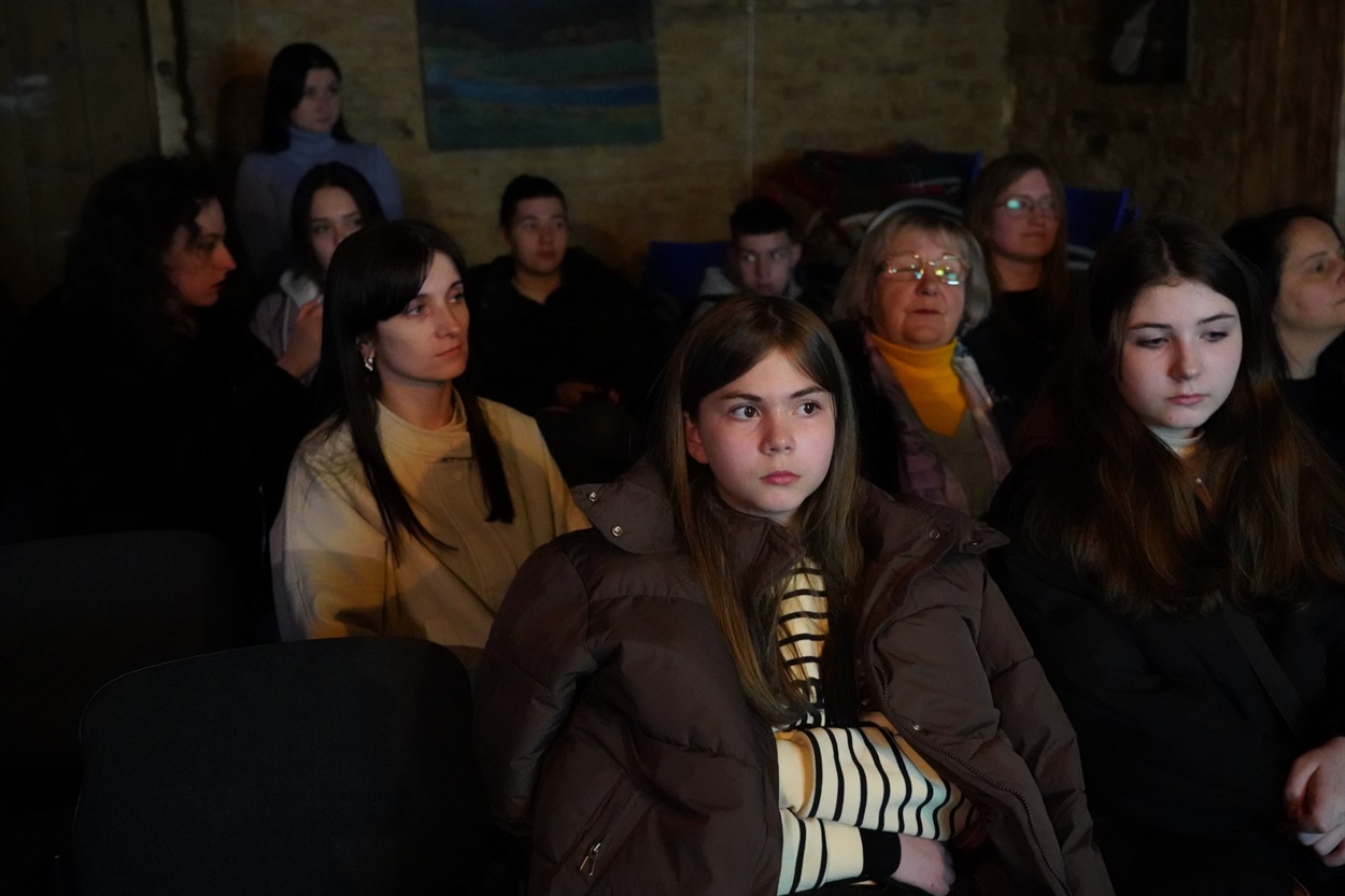 У приміщенні кав’ярні зібралася різновікова аудиторія - від молодшого шкільного віку до людей поважного віку. Після перегляду модераторка Ірина Стороженко запропонувала обговорення. До розмови онлайн долучився режисер фільму Сергій Буковський, який поділився досвідом створення стрічки.